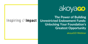 akoyaGO Webinar Inspiring Impact shares their secret to growing unrestricted endowment funds. Recently, we hosted a conversation with Inspiring Impact about how foundations can rethink grantmaking through both community-driven and